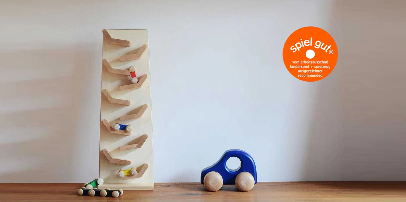 Ein besonderer Stolz unseres Unternehmens ist die „spiel gut“ Auszeichnung, die 90% unserer Artikel tragen. Dieses unabhängige Siegel bestätigt, dass unsere Spielzeuge sicher, umweltverträglich und von höchster Qualität sind. Unsere Beizen und Lacke sind vollständig unbedenklich und entsprechen den strengen Sicherheitsvorschriften der DIN EN 71 Norm.