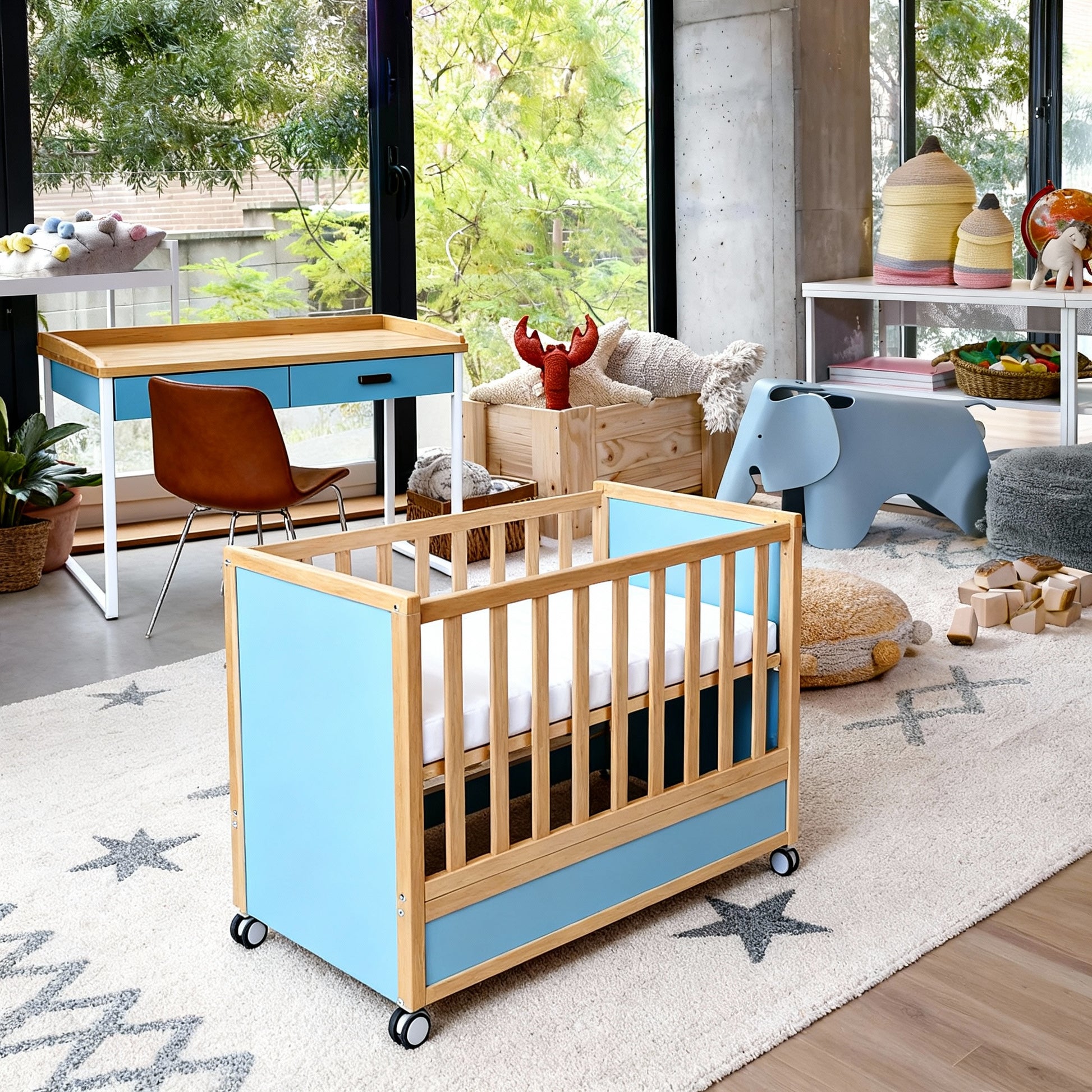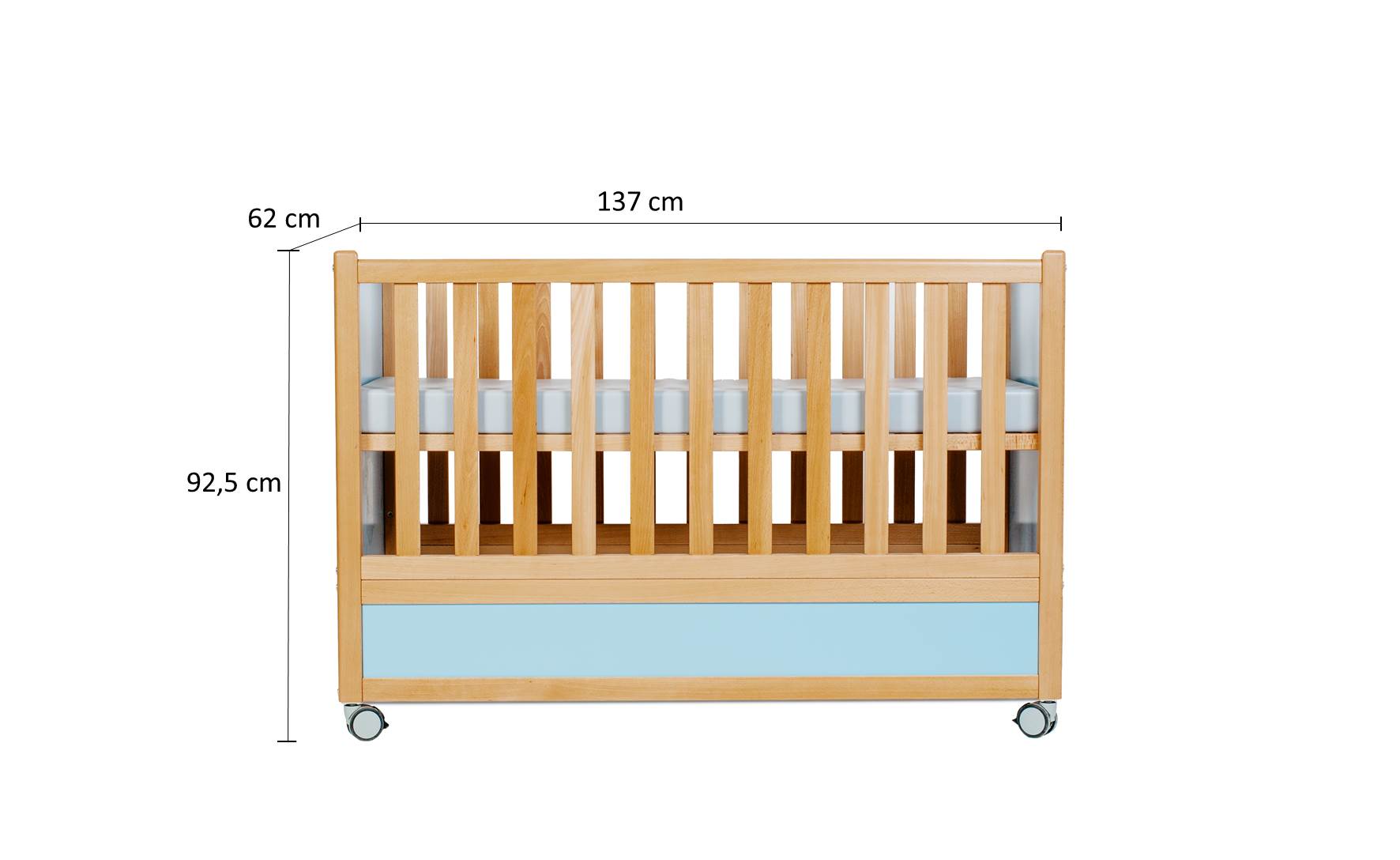 Das KundlerHome Babybett „Alva“ ist mehr als nur ein Schlafplatz – es ist ein liebevoll gestalteter Rückzugsort. Sein Rahmen aus massiver Buche sorgt für hohe Stabilität, während die MDF-Flächen eine pflegeleichte, samtmatte Oberfläche bieten.
