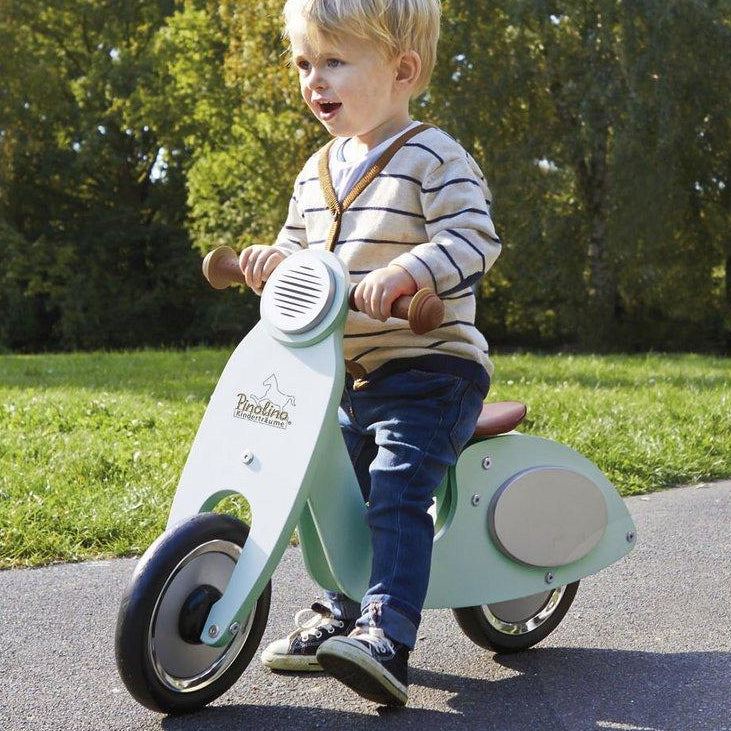 Gefertigt aus massivem Buchenholz und in einem modernen mint-silber Design lackiert, bietet dieses Laufrad Deinem Kind eine sichere und vergnügliche Möglichkeit, das Gleichgewicht zu lernen und sich auf das Fahrradfahren vorzubereiten.