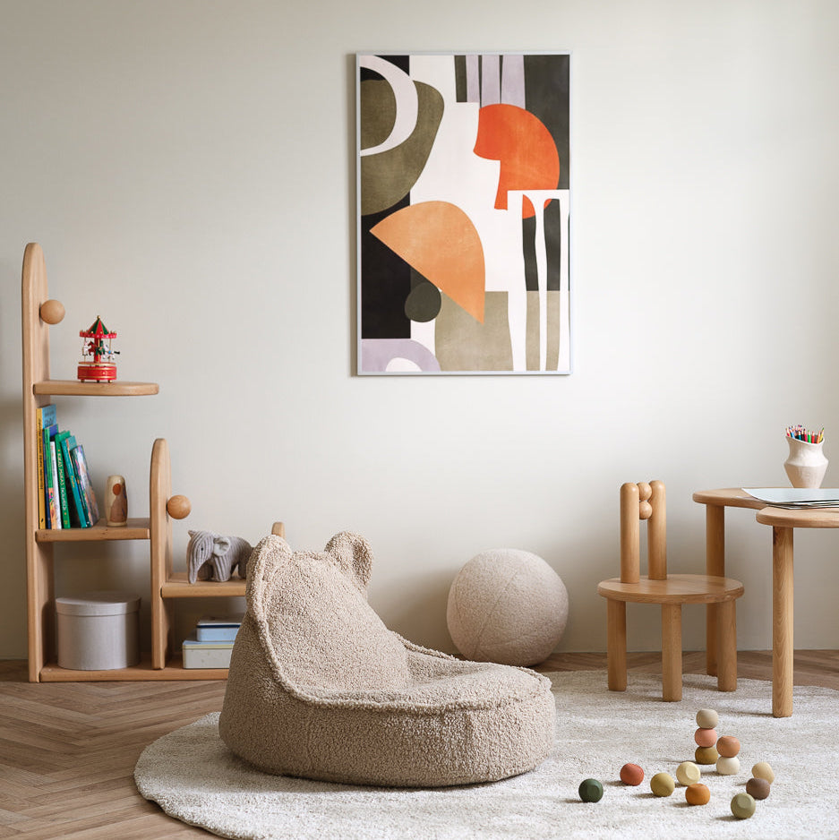 Der Wigiwama Kindersitzsack Bär schenkt Kindern einen eigenen gemütlichen Rückzugsort. Die weiche Form lädt zum Kuscheln ein und bietet gleichzeitig genügend Halt zum Lesen oder Spielen. Das verspielte Design macht den Sitzsack zu einem dekorativen Highlight im Kinderzimmer und passt besonders gut zu modernen, skandinavischen Einrichtungen.
