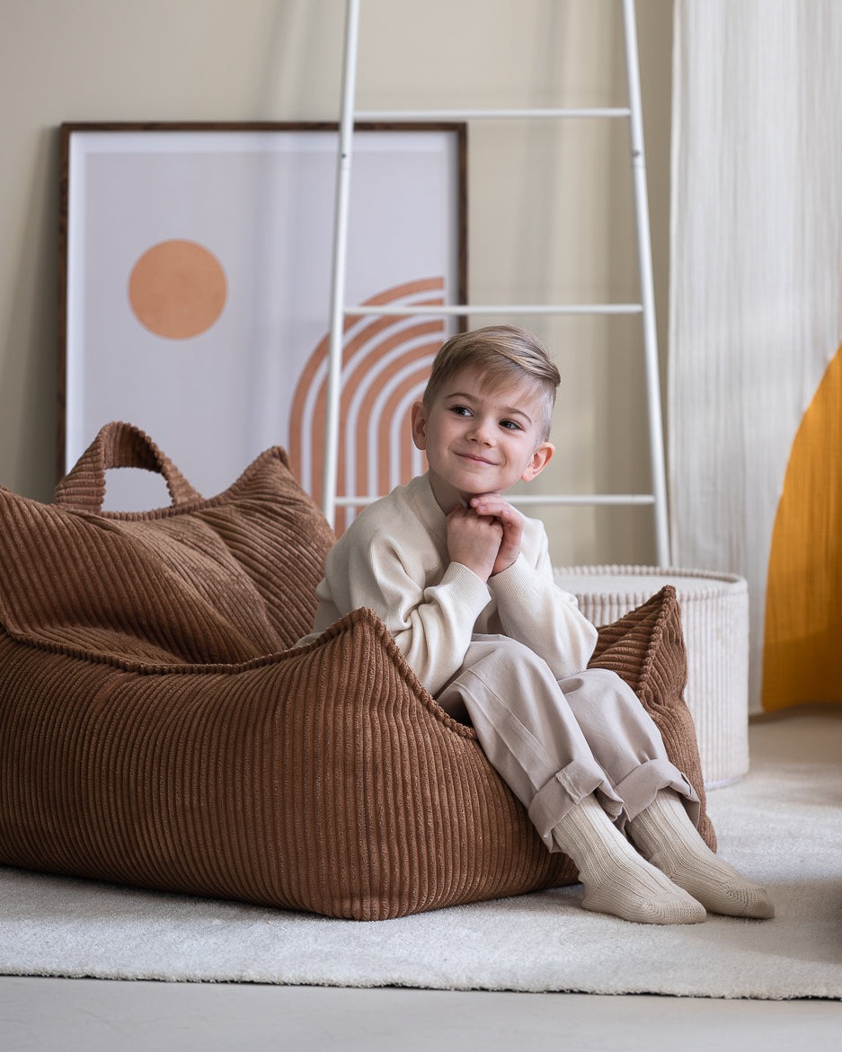 Gemütlicher Kindersitzsack für Spielen, Lesen und Entspannen. Der Wigiwama Sitzsack Sessel für Kinder aus Breitcord schafft einen gemütlichen Rückzugsort im Kinderzimmer. Die weiche Sesselform bietet Kindern einen bequemen Platz zum Lesen, Spielen, Entspannen oder für eine kleine Ruhepause zwischendurch.