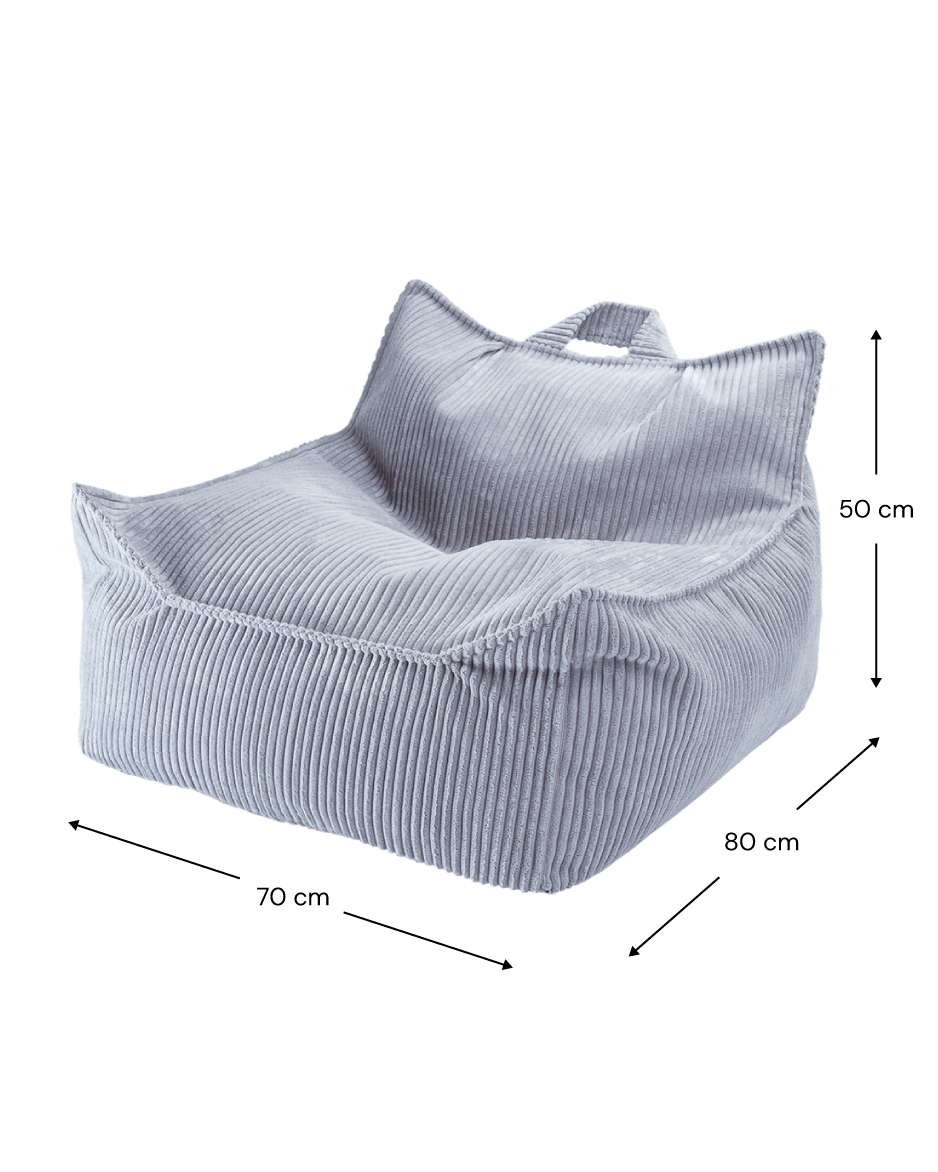 Mit seiner Größe von 80 × 70 × 50 cm eignet sich der Sitzsack ideal für Kinderzimmer, Leseecken oder Spielbereiche und fügt sich dank seines zeitlosen Designs harmonisch in moderne Wohnräume ein.