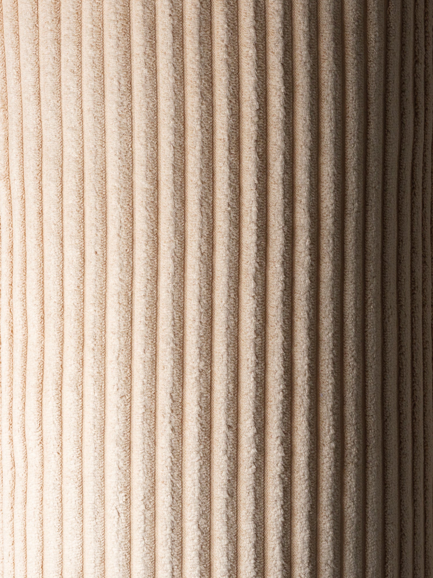 Das Außenmaterial besteht je nach Variante aus GRS®-zertifiziertem Breitcord aus recycelten PET-Flaschen oder aus besonders weichem OEKO-TEX® zertifiziertem Teddystoff.