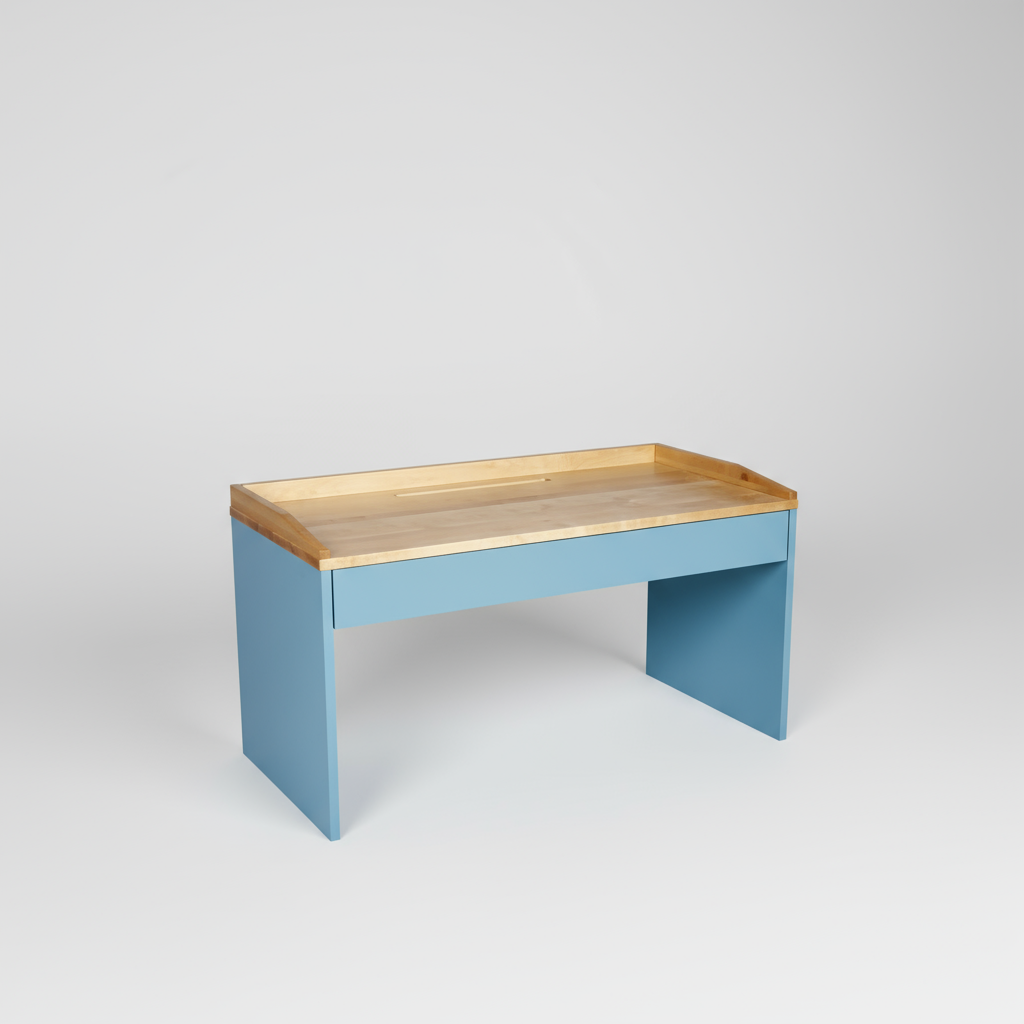 Mit seiner kompakten Größe (B 100 × T 50 × H 50 cm) ist „Sola“ perfekt für Kinderzimmer, Spielbereiche oder kleine Lernecken geeignet. Die zusätzliche Massivholzleiste (+10 cm) bietet Sicherheit und verhindert, dass Stifte oder Bausteine herunterfallen.
