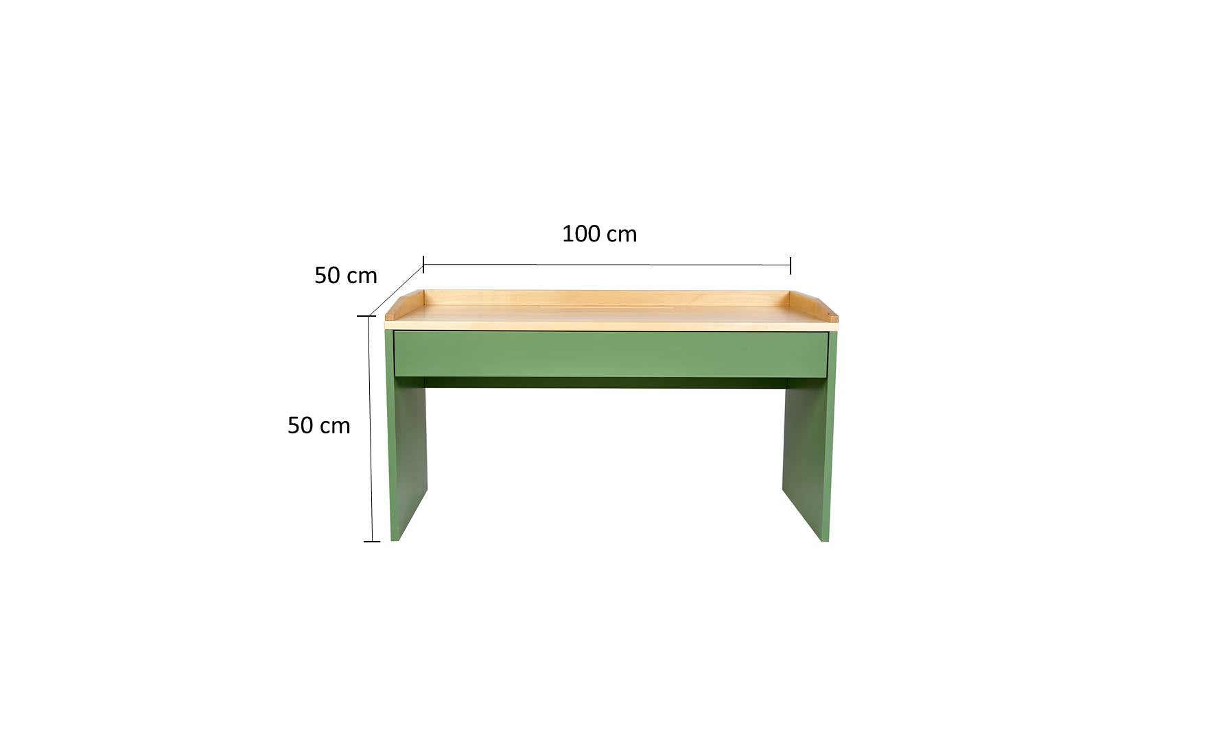 Maße (B × T × H): 100 × 50 × 50 cm (+ 10 cm Massivholzleiste am Rand)