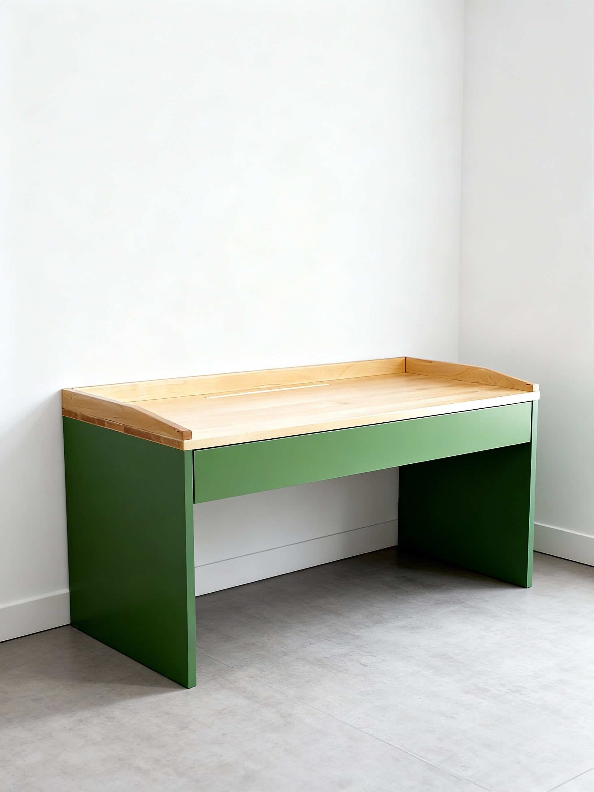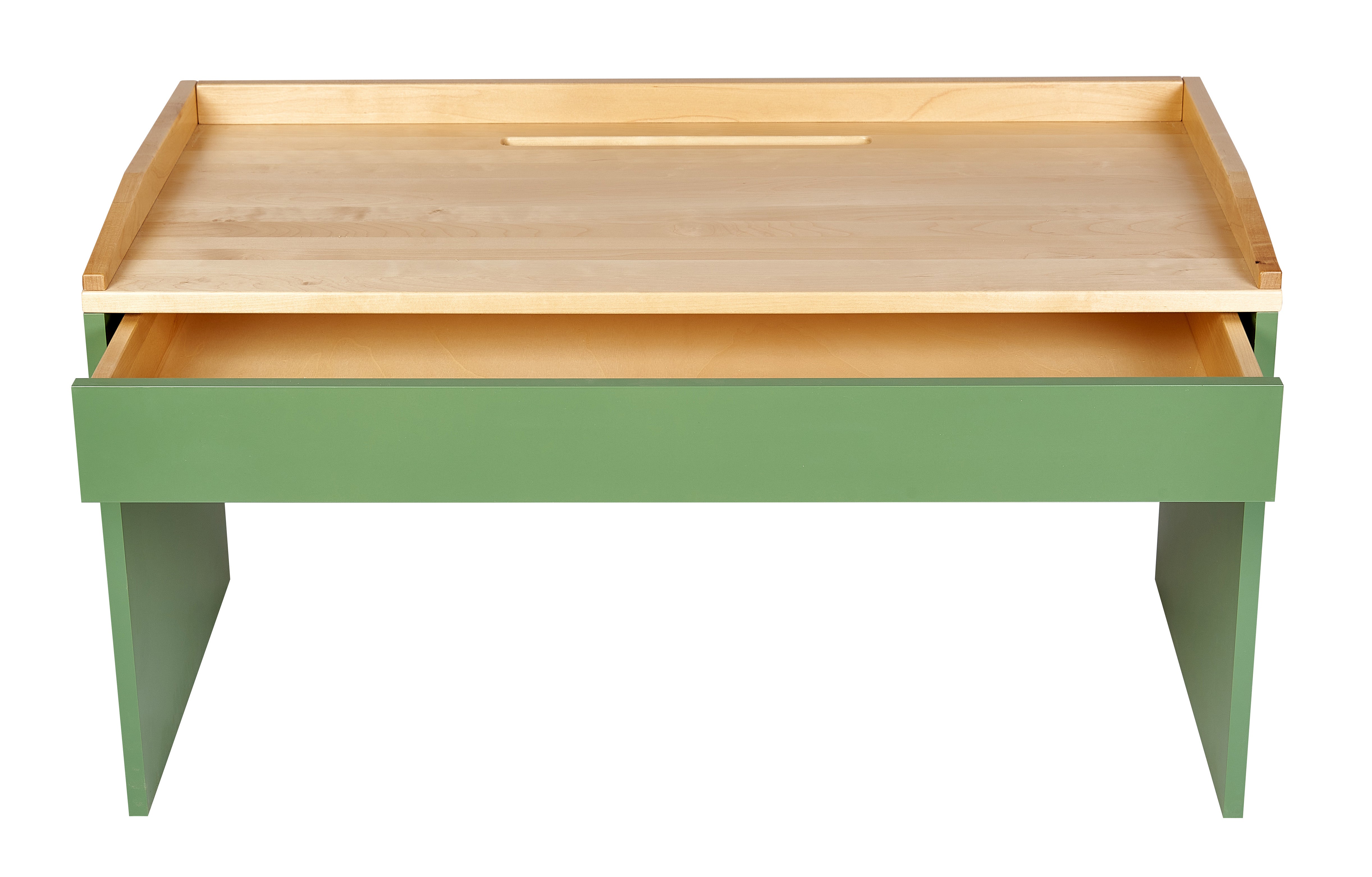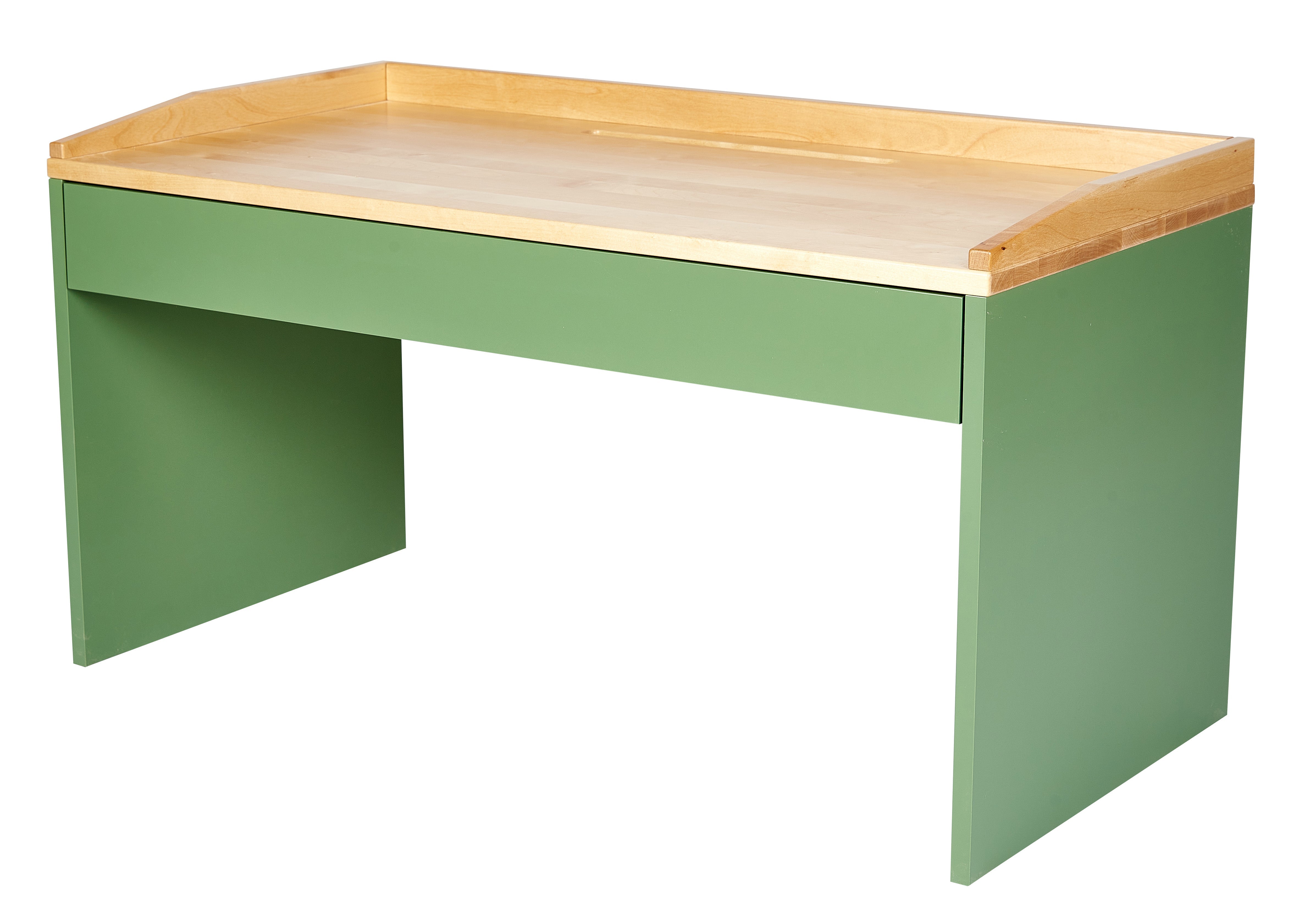 Die integrierte Einwurföffnung in der Tischplatte sorgt für ein aufgeräumtes Kinderzimmer – Stifte, Bauklötze oder kleine Schätze verschwinden einfach in der darunterliegenden Schublade aus Echtholz. So wird Ordnung kinderleicht, und der Tisch bleibt stets bereit für neue Ideen.