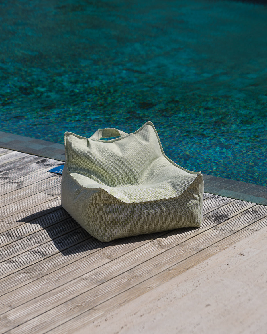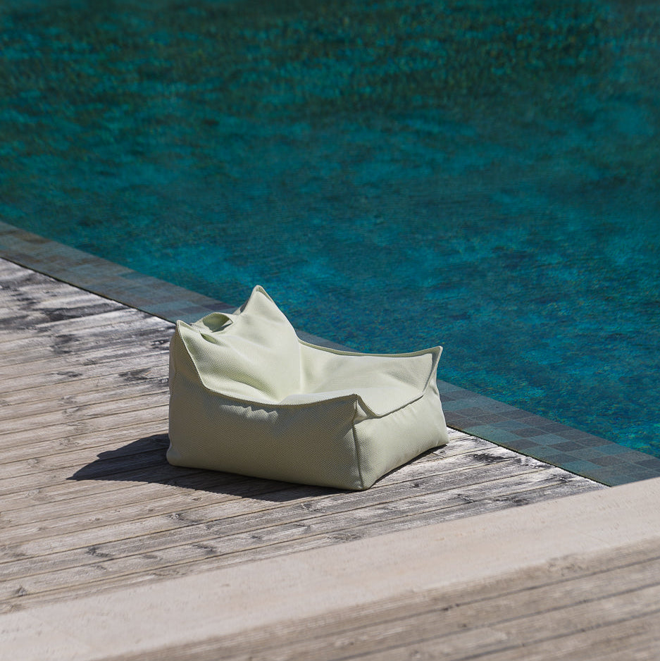 Der Bezug besteht aus OEKO-TEX® zertifiziertem Olefin, einem hochwertigen Outdoor-Stoff, der besonders UV-beständig, chlorresistent und schnelltrocknend ist. Dadurch eignet sich der Sitzsack ideal für sonnige Tage im Garten oder entspannte Stunden am Pool.